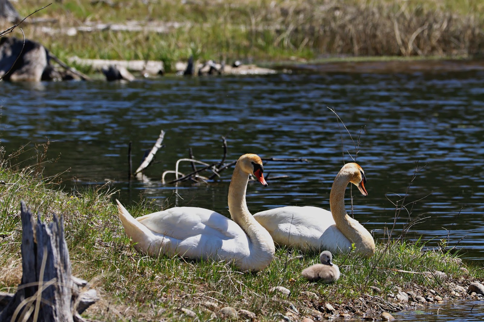As we walked a bit we discovered a couple swans and a small baby resting along the riverbank.